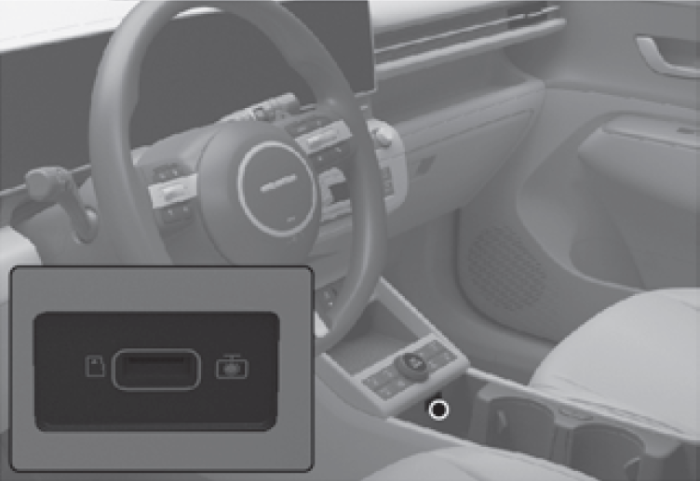 빌트인 캠 수동 녹화 버튼을 이용하여 운전자가 원하는 시점의 전후 상황을 영상으로 저장할 수 있습니다. 시동이 켜진 상태에서 빌트인 캠 수동 녹화 버튼을 누르면 빌트인 캠 녹화 설정과 관계없이 작동합니다. 수동 녹화 중에 시동을 끄거나 빌트인 캠 메뉴를 선택하는 경우 녹화가 종료됩니다.