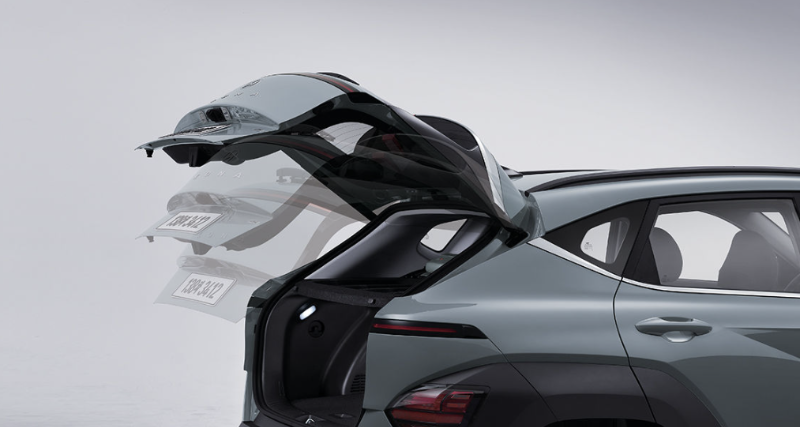 2024 디올뉴 코나 모던 트림, 모던 플러스 트림, 프리미엄 트림은 테일게이트가 적용됩니다. 테일게이트는 차량의 잠금이 해제된 상태에서 상단의 핸들 스위치를 누르면서 들어 올리며 테일게이트를 열 수 있습니다. 반대로 테일게이트를 닫을 때는 끝단 손잡이를 잡고 내려서 양손으로 눌러 닫습니다.