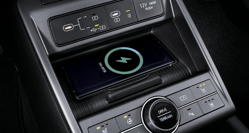 2024 디올뉴 코나 프리미엄 트림에서 컨비니언스 옵션을 추가하거나, 인스퍼레이션 트림을 선택하면 스마트폰 무선 충전 기능이 적용됩니다.