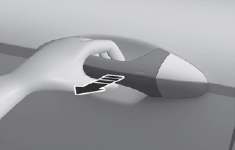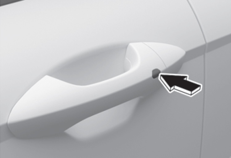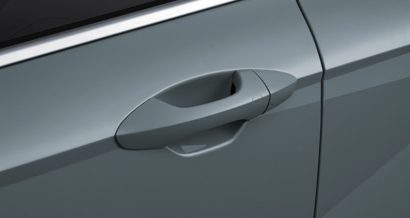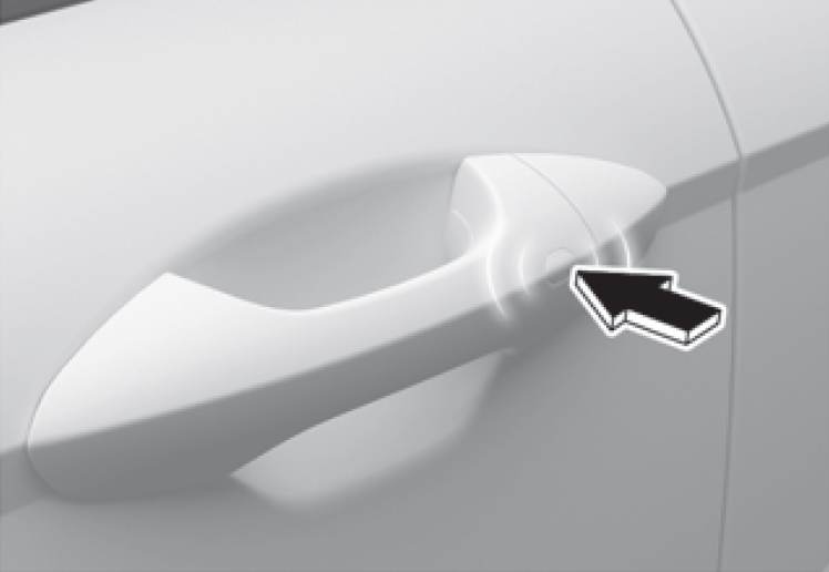 터치 타입 아웃사이드 도어 핸들은 위 사진의 화살표 부분을 터치하면 도어가 잠깁니다. 반대로 도어 잠금을 해제하기 위해서는 도어 핸들 안쪽에 있는 도어 잠금 해제 센서부를 터치하면 도어 잠금이 해제됩니다.