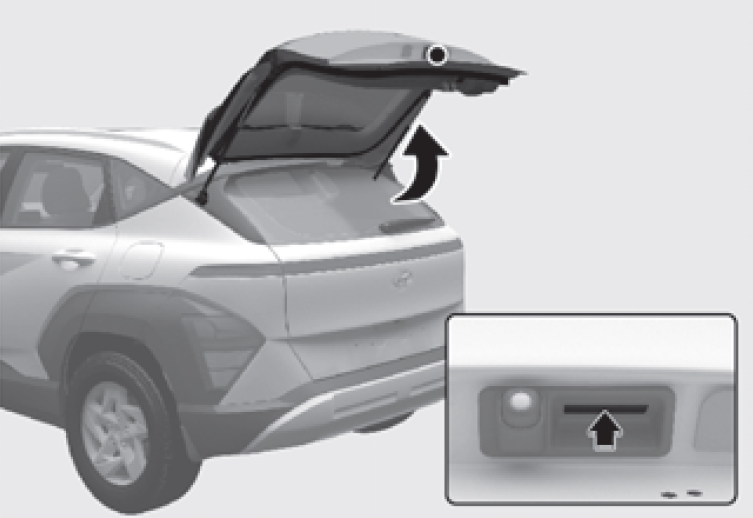 테일게이트가 닫힌 상태에서 테일게이트 뒷편의 버튼을 누르면 경고음과 함께 테일게이트가 열립니다. 테일게이트가 잠겨있는 상태에서도 스마트 키를 휴대하고 버튼을 누르면 테일게이트가 열립니다.