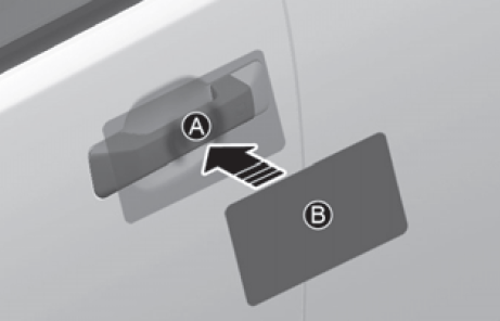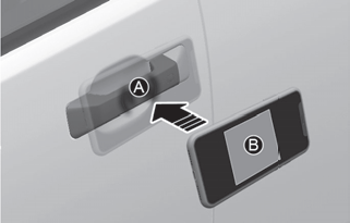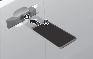 등록된 스마트폰의 뒷면에 있는 NFC 안테나를 운전석 및 동승석 도어 핸들 인증 패드에 2초 이상 접촉하면 도어가 잠금 또는 잠금 해제 됩니다.
