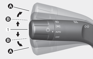 고속도로 등 작동 가능한 도로를 주행하고 있을 때 운전자가 방향지시등 스위치를 A 또는 B에 위치시키면 고속도로 차로변경 보조 기능이 작동됩니다.
