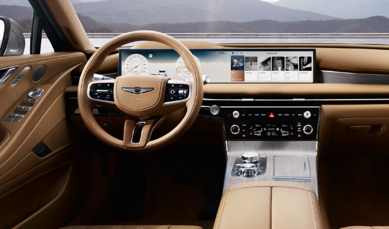 2024년 부분변경 모델이 출시되며 제네시스 G80에 27인치 OLED 클러스터 / 내비게이션 통합형 디스플레이가 적용됩니다. 기존 G80은 클러스터와 내비게이션이 분리되어 있는 디자인이었으나 최근 현대 및 기아 자동차에서 나오는 차량에는 27인치 통합형 디스플레이가 적용되고 있어 여기에 맞춰 제네시스도 변화를 이루었습니다.