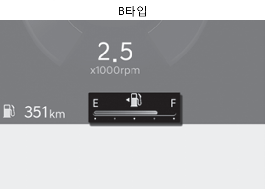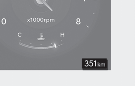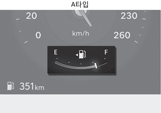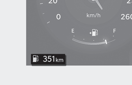 연료계 옆에 주행 가능 거리가 표시됩니다. 만약 주행 가능거리가 없다면 '---'로 표시됩니다.