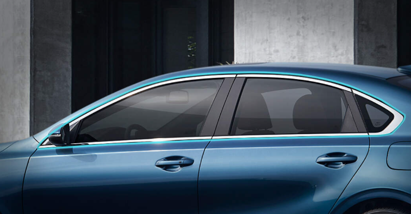 도어 윈도우를 감싸고 있는 부분인 서라운드 몰딩의 소재는 트렌디 및 프레스티지 트림의 경우 무광블랙 소재가 적용됩니다. 최상위 시그니처 트림을 선택하면 유광 크롬 소재가 적용됩니다.