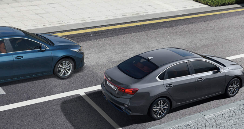평행주차 상태에서 전진 출차 중 후측방 차량과 충돌 위험이 감지되면 자동으로 제동을 도와줍니다.