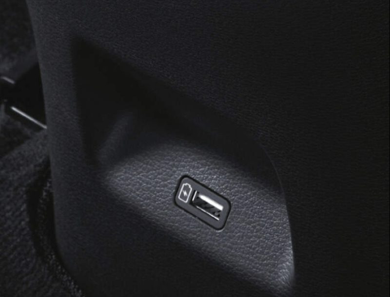 엔진 시동 상태에서 뒷좌석에 위치한 USB 충전 잭을 이용하여 소형 전자제품을 충전할 수 있습니다