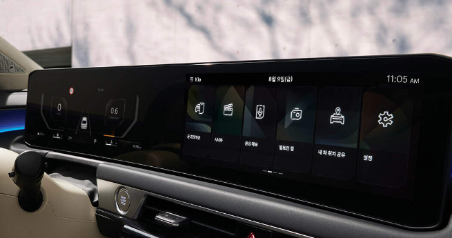 파노라믹 커브드 디스플레이는 인포테인먼트 시스템과 클러스터를 하나로 연결하는 대화면으로 최근 현대 및 기아에서 출시되는 모든 차량에 적용되고 있는 내장 디자인입니다.