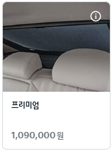 프리미엄 옵션은 109만 원으로 다양한 편의 기능이 추가됩니다. 비싼 가격이지만 추가되는 기능들이 5가지로 주로 뒷좌석 탑승자의 편의 향상에 도움이 됩니다.