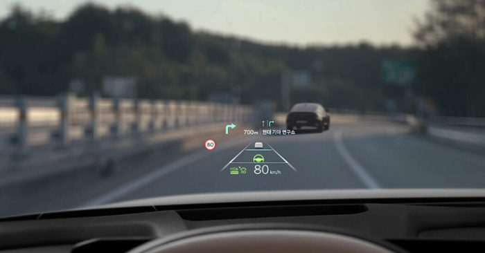 헤드업 디스플레이는 전면 유리(윈드쉴드 글라스)에 그래픽을 통해 주행 정보 및 내비게이션 상의 경로를 표시하는 기능입니다.