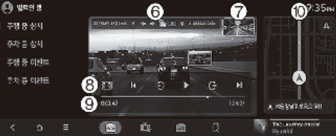 10. 녹화 위치: 내비게이션 지도상에 영상이 녹화된 위치를 표시, 터치하여 원하는 위치로 이동