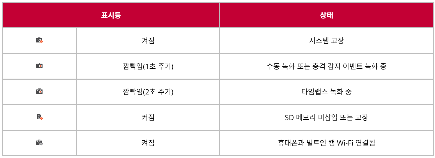 전후방 카메라에 있는 표시등을 통해 빌트인 캠의 작동 상태를 확인할 수 있습니다.