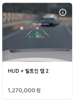 HUD + 빌트인 캠 2 옵션을 선택하면 헤드업 디스플레이, 빌트인 캠 2, 증강현실 내비게이션 기능이 적용됩니다.