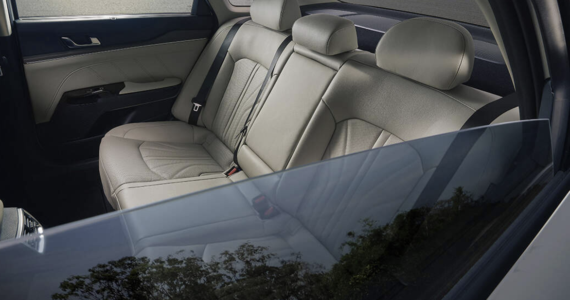K5 최하위 프레스티지 트림은 윈드쉴드(앞유리) 및 앞좌석에 이중접합 차음 글라스가 기본 적용됩니다. 최상위 시그니처 트림은 윈드쉴드 및 앞좌석은 물론 뒷좌석에도 이중접합 차음 글라스가 적용됩니다.