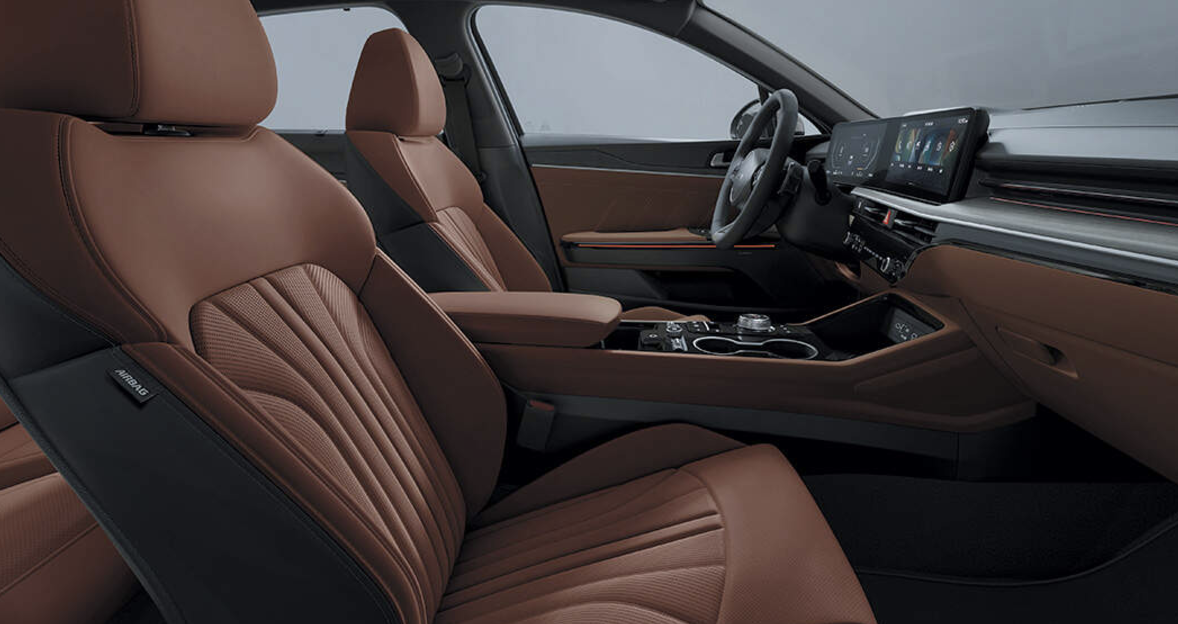 K5 프레스티지, 노블레스 트림에서 인조 가죽 시트가 적용됩니다. 최상위 시그니처 트림은 퀼팅 가죽 시트가 적용됩니다.