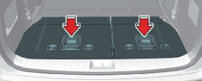 뒤쪽 시트의 헤드레스트는 가장 낮은 위치로 낮춘 후, 등받이 접이 레버 또는 스트랩을 당긴 다음 시트를 차량 앞쪽으로 접습니다.