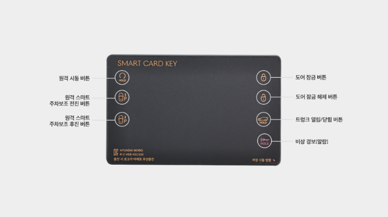 위 사진과 같이 24년 5월 이후 출시 차량에 적용되는 신형 스마트 키가 있는 차량에서 버튼형 스마트 카드 키를 사용할 수 있습니다.