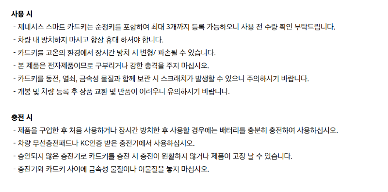 또한, 스마트 카드 키가 포함된 차량 구입 옵션이 삭제되고 스마트 카드 키는 제네시스 부띠크 몰에서 10만 원에 구입 가능합니다.