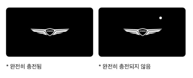 스마트 카드 키는 카드 내에 배터리가 내장되어 있기 때문에 무선 충전 패드에 올려 최소 30분 이상 충전을 한 이후 사용하는 것이 좋습니다. 카드의 배터리 방전 시 차량을 제어할 수 없기 때문에 가끔씩 충전하는 과정이 필요합니다.