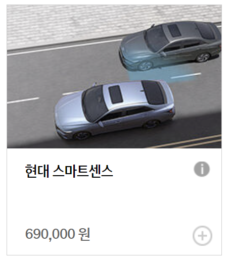 2026 아반떼 하이브리드 현대 스마트센스 옵션은 스마트, 모던, 모던 라이트 트림에서 추가할 수 있습니다.
