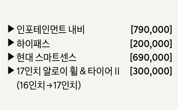 | 인포테인먼트 내비 | 79만 원 | 79만 원 |