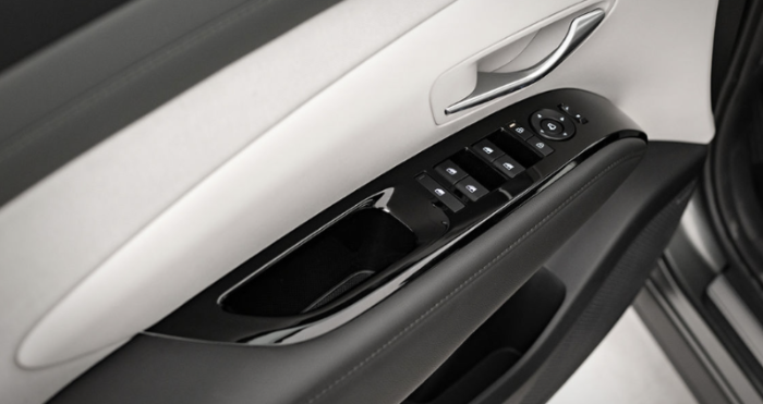 도어 암레스트 부분에 위치한 창문 조절 장치에 고광택 처리되어 고급스러운 하이그로시 내장재가 적용되어 차량 내부의 디자인이 업그레이드됩니다.