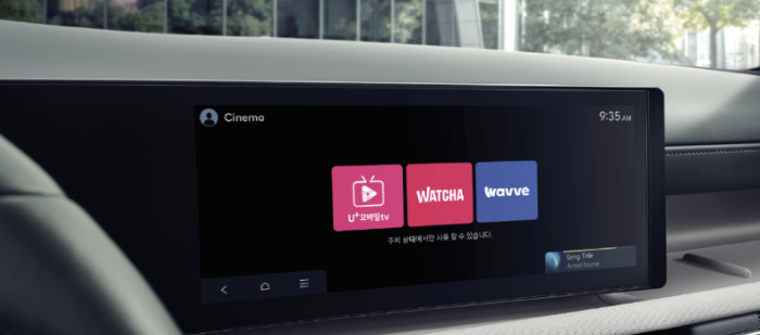 투싼 12.3인치 내비게이션에는 블루링크 스트리밍 서비스가 추가되어 U+모바일 TV, 왓챠, 웨이브 등 인포테인먼트 시스템을 통해 시청이 가능하며, 지니 및 멜론 음원 서비스 이용도 가능합니다.
