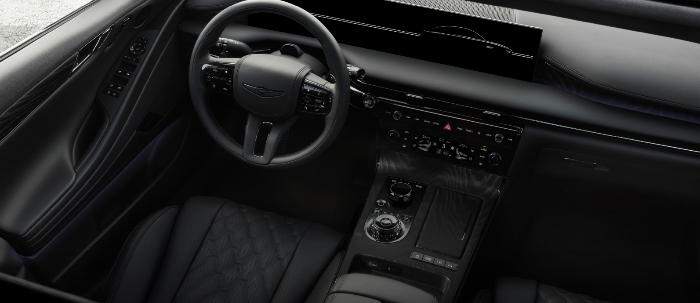 제네시스 G80 블랙은 블랙 색상의 전용 소재와 패턴을 적용하고, 운전자의 손이 닿는 곳의 느낌까지 고려하여 차별화된 실내를 제공합니다.
