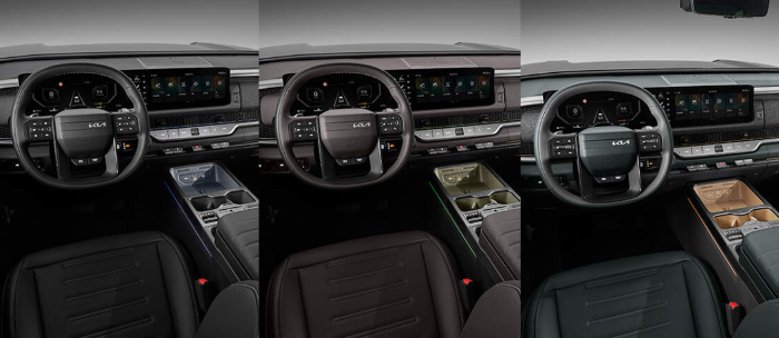 기아 타스만은 트림별로 적용 가능한 색상이 제한됩니다. 최하위 다이내믹 트림은 블랙 인테리어 1가지 색상, 어드벤처 트림은 블랙 / 브라운 인테리어 2가지 색상, 최상위 익스트림 트림은 블랙 / 브라운 / 딥그린 3가지 색상 중 선택 가능합니다.
