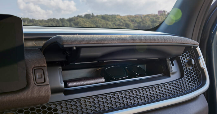 크래쉬패드는 스티어링 휠 뒷부분에 위치한 엔진룸을 가려주는 부분입니다. 조수석 쪽의 크래쉬패드에 적재공간을 적용하여 지각이나 선글라스 등 작은 소품들을 보관할 수 있습니다.