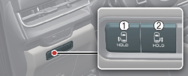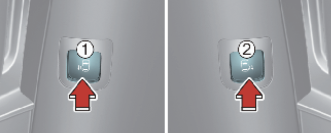 위 사진의 1번 버튼을 누르면 왼쪽 파워 슬리이딩 도어가, 2번 버튼을 누르면 오른쪽 파워 슬라이딩 도어가 열립니다. 버튼을 1초 이상 길게 누르면 도어가 열리거나 닫힙니다.