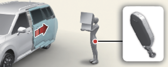 차량에서 간단한 설정으로 파워 슬라이딩 도어를 자동으로 열리게 하는 장치로, 양손에 짐을 휴대하거나 아이를 안고 있는 경우 편리하게 이용할 수 있습니다.