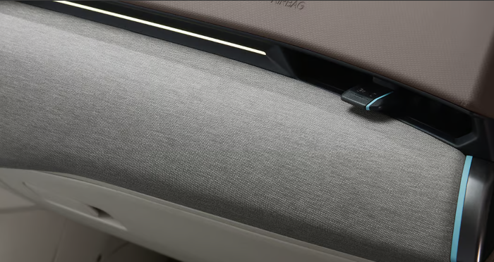 EV4 어스 트림을 선택하면 크래쉬 패드에 패브릭 소재의 내장재가 적용되어 섬세하고 깔끔한 실내 디자인을 완성합니다. 패브릭 감싸기는 도어 암레스트 및 크래쉬 패드에 적용됩니다.