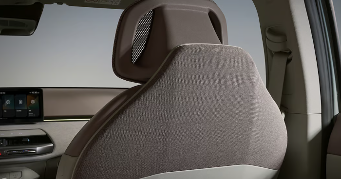 EV4 어스 트림은 앞좌석 시트 뒤쪽에 패브릭 재질의 내장재가 적용됩니다. 패브릭 소재가 적용되어 실내 공간이 안락하고 편안한 분위기를 연출합니다.