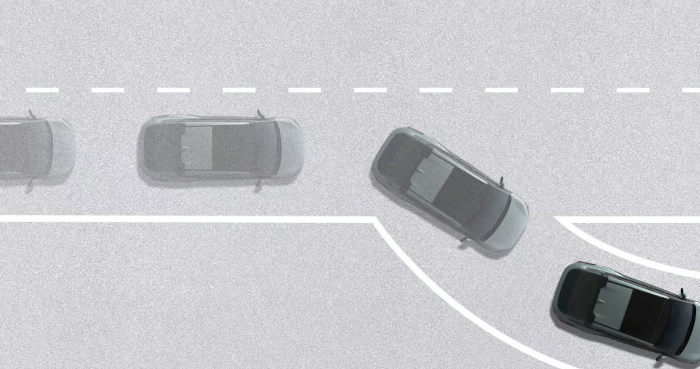차로변경 시 맞은편에서 접근하는 차량, 이륜차와의 충돌 위험이 판단되면 충격을 줄이거나 회피하도록 조향을 도와줍니다.