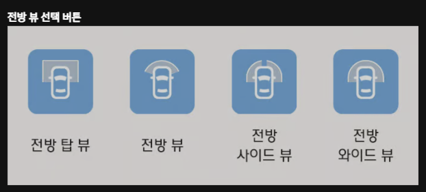 그 외의 주차, 중립, 주행단에서는 전방/후방 탑 뷰, 전방/후방 뷰, 전방/후방 사이드 뷰, 또는 전방/후방 와이드 뷰를 선택할 수 있습니다.