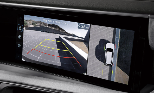 디올뉴 팰리세이드에 적용되는 서라운드 뷰 모니터 기능은 차량 앞/뒤/좌/우 360도 모든 상황을 인포테인먼트 화면을 통해 볼 수 있는 장치로 고화질 및 디지털 영상 전송 방식을 적용하여 영상 경계선 없이 선명하고 깨끗한 화질을 제공합니다.