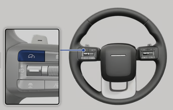 고속도로 주행 보조가 작동 가능한 도로 주행 시, 운전자가 스티어링 휠의 주행 보조 버튼을 눌러 고속도로 주행 보조 기능을 작동시킬 수 있습니다.