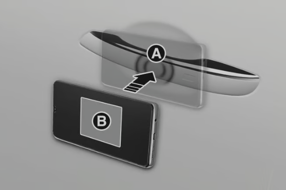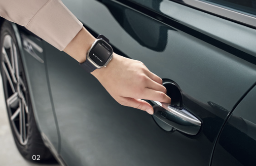 스마트폰을 차량 도어 핸들에 터치하여 도어 잠금 / 잠금 해제가 가능하며, 차량 내 실내 인증 패드 (무선 충전 패드) 위에 올려놓고 시동을 걸 수 있습니다.
