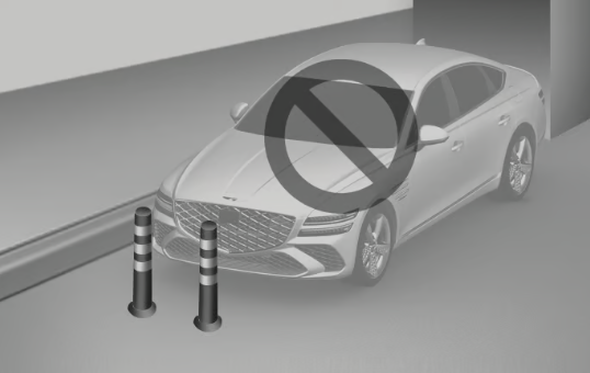 제네시스 G80의 초음파 센서는 폭이 좁은 장애물, 원형 기둥, 작은 기둥, 사각 기둥 모서리 또는 기둥 주변 소화전 등의 구조물은 인식하지 못할 수 있습니다. 이런 장애물 주변에서 원격 스마트 주차 보조 기능을 사용할 경우 충돌이 발생할 위험이 있습니다.