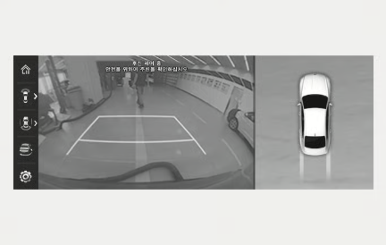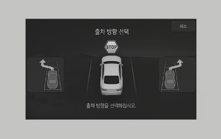 브레이크 페달을 밟아 정차한 상태에서 인포테인먼트 시스템 화면을 터치하거나 중앙 집중키로 조작하여 원하는 출차 방향을 선택합니다.