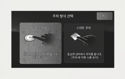 주차 유형 선택 후 운전자는 인포테인먼트 시스템 화면에 표시된 주차 기능을 선택해야 합니다. 이때 차량이 움직이면 원격 스마트 주차 보조 기능이 종료되기 때문에 운전자는 브레이크 페달을 밟고 있어야 합니다.