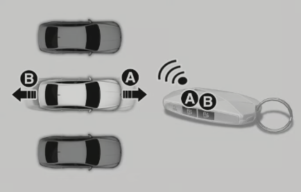 차량 외부에서 운전자는 스마트 키의 전진 버튼 또는 후진 버튼을 눌러 차량을 움직일 수 있습니다. 운전자가 버튼을 누르고 있으면 차량은 스티어링 휠, 차량 속도, 변속을 자동으로 제어합니다. 운전자가 버튼에서 손을 놓으면 기능이 일시 중지되고, 다시 버튼을 누르면 기능이 작동합니다.