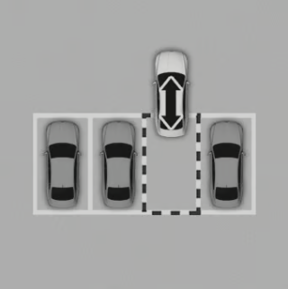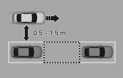 주차공간과 약 1m의 일정 간격을 유지하면서 운전자는 악셀을 살짝 밟아 직진으로 서행합니다. 차량은 이때 인식센서를 활용하여 주차선 또는 주차된 차량의 옆 또는 앞뒤 공간을 감지하여 주차 공간을 자동으로 탐색합니다.