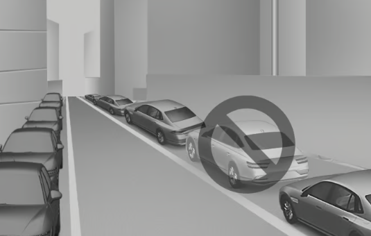 주차에 필요한 최소 공간(차량 회전 반경)보다 좁은 도로(주택가 양방향 주차 환경, 이중 주차 환경 등)에서는 안전을 위해 공간 탐색을 하지 않는 것이 좋습니다.