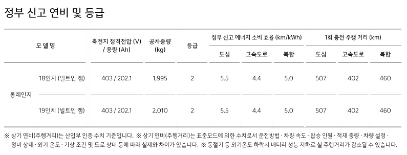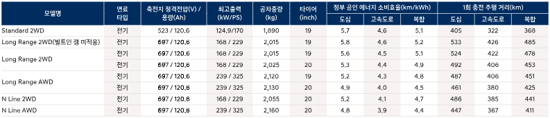 롱레인지 모델을 기준으로 1회 충전 주행 거리를 비교해보겠습니다.