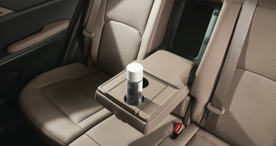 뒷좌석의 센터를 앞으로 당겨 내리면 나오는 암레스트로 슬라이딩 커버 기능을 이용하여 컵홀더 기능을 활용할 수 있어 편리합니다.