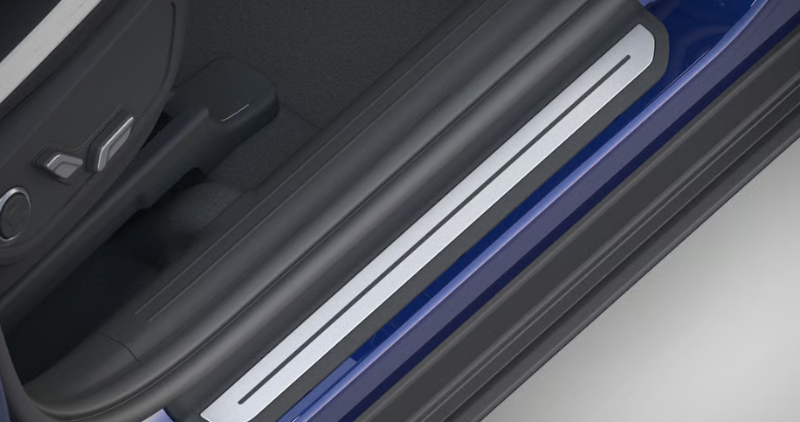 자동차를 타고 내리는 도어의 문틈 하부를 보호하는 도어스커프 부분을 메탈로 만들어 차체를 보호하고 고급스러운 감성을 전달합니다.