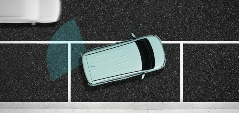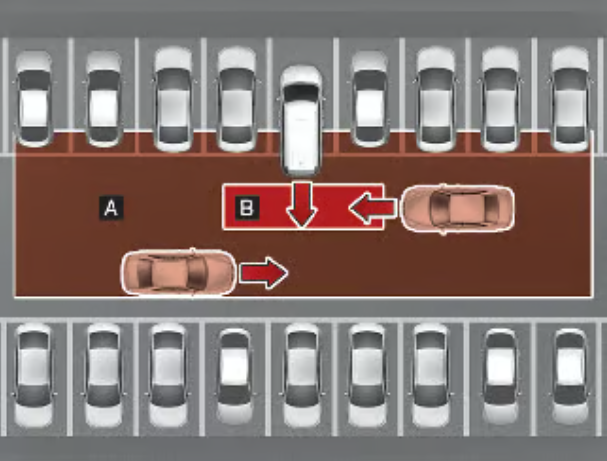 위 사진을 보면 A 영역에 차량이 있을 경우 경고하며, B 영역에 차량이 있을 경우 자동으로 제동을 도와 사고를 예방합니다.